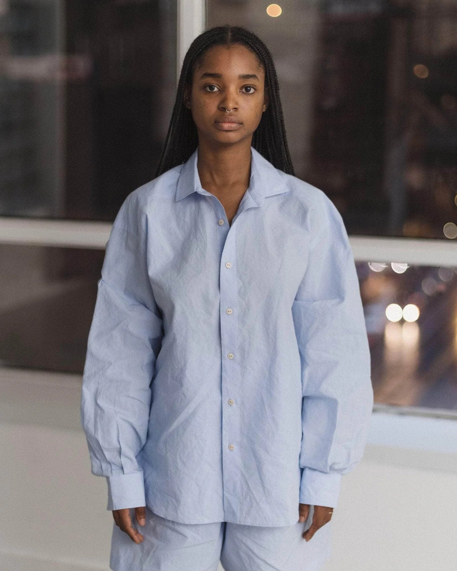Ånde Store Notes: This novelty cotton, with a paper-like crisp quality, goes through a process in which the fibers are swollen so that the volume of the fibers increase, which in turn shrinks the fabric. This treatment increases the density of the fabric.