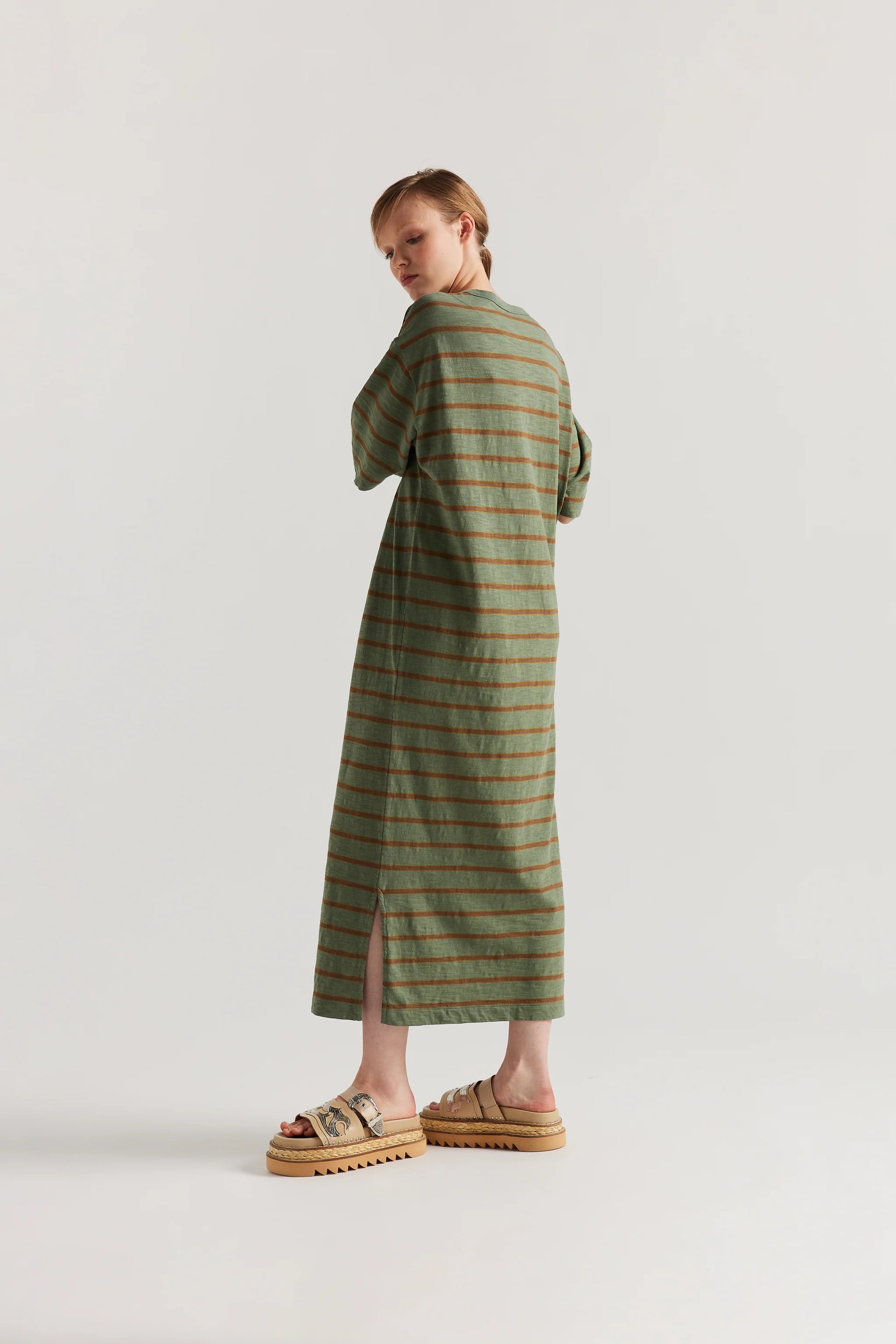 Fidelity Dress - Olive and Tan Stripe