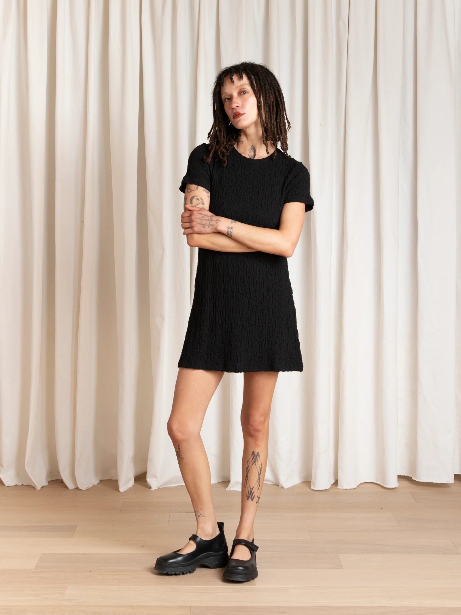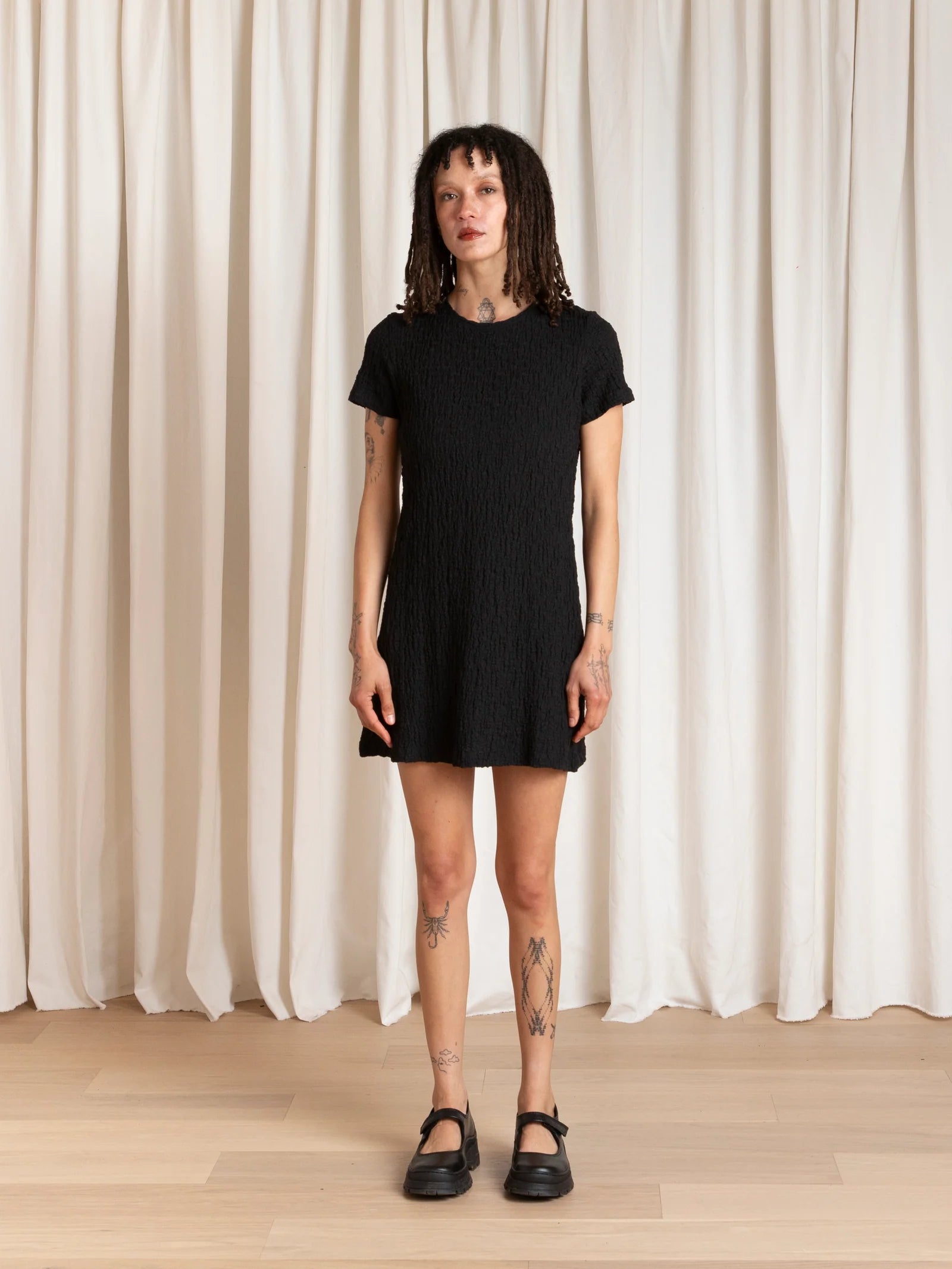 Mini Textured T-Shirt Dress - Black
