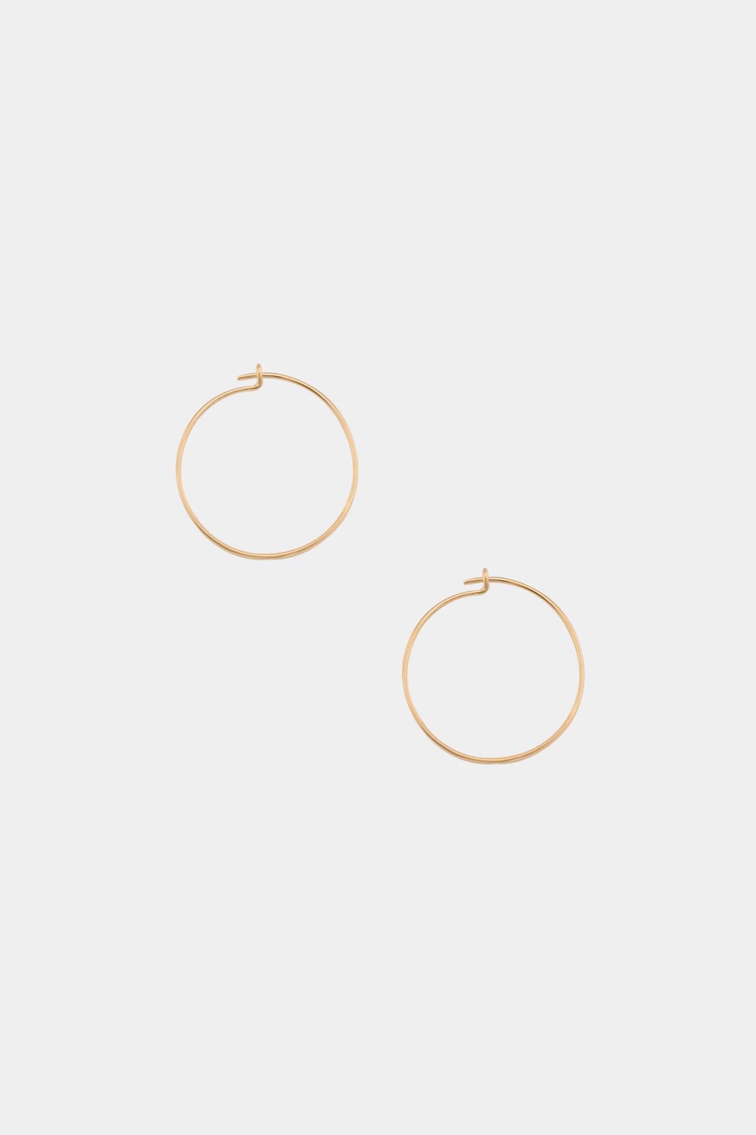 Circular-shaped, fully closed pull-through hoops with delicate tapped detail. Super lightweight and easy to wear. Comes in 3 sizes: small (1.5in diameter), medium (1.75in diameter) and large (2.25in diameter).